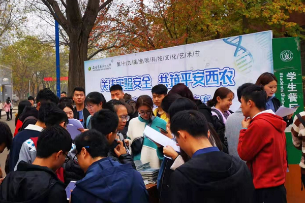 为进一步提高同学们对实验室安全工作重要性认识,学习实验室安全知识,增强安全防范能力,切实强化安全红线意识,共建和谐平安校园。2019年11月8日,探花系列 研究生会和学生会在南校苦楝广场举行了金秋科技文化艺术节之第三届实验室安全知识竞赛的第二·次宣传活动。