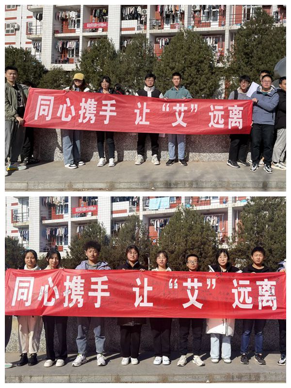 为加强同学们防艾的安全意识,同时促进学生养成健康生活,热爱生命的观念,让每一位同学都能熟悉艾滋病的知识和信息,阳光团工委动科支部于12月1日国际艾滋病日在西雕广场举行艾滋病知识调查问卷填写活动。本次活动的主题为“同心携手 让‘艾’远离”。