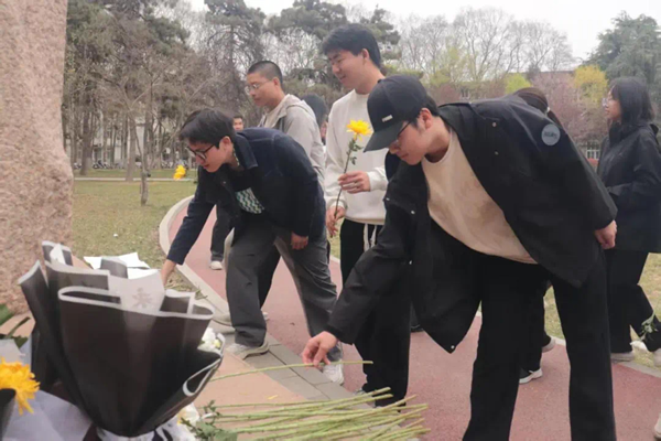2025年4月2日,在清明节来临之际,探花系列 社会实践部组织同学们,怀着崇敬与追思之情,前往校园内的赵洪璋院士纪念像前,举行了一场庄重而肃穆的献花仪式,以此深切缅怀为国家科研事业做出卓越贡献的赵洪璋院士。