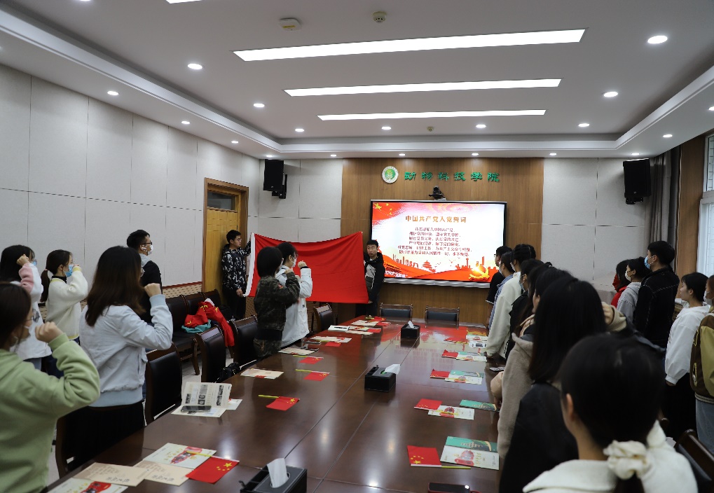 成为一名党员,面向党旗宣誓的那一刻开始,滚烫的血液促使我们用一生去坚守初心使命。入党誓词里,蕴含着共产党人的初心使命,彰显着共产党人独有的红色气质。入党誓词字数不多,记住并不难,难的是终身坚守。面对鲜红的党旗,同志们高举右手,齐肩握拳,由研究生第九党支部书记胡张涛领诵誓词,“我志愿加入中国共产党……随时准备为党和人民牺牲一切,永不叛党。”铿锵恢宏的誓词,声声震耳,强烈震撼着在场的每一位党员,一字一句,神圣而豪迈,体现了党员同志们对中国共产党的无限忠诚和热爱。胡张涛同志对在座的每一位党员提出了明确的要求:一是要不断回头看,端正入党动机,正确的入党动机是前行的正确方向;二是要发挥党员先锋模范作用,党员在发展完善自己的同时更应起到模范带头作用,努力做好学习、志愿服务、创新创业以及担当作为的表率;三是要加强政治理论学习,理论是行动的指南,政治理论学习永远在路上,要充分利用现有的资源及平台,加强理论学习,不断提高自身素养。