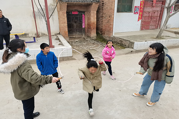 志愿者们与孩子们玩跳绳