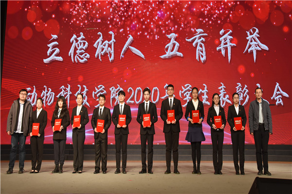 党委书记曹军会为“院级优秀大学生”“优秀学生干部”获奖代表颁奖