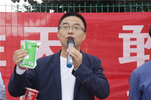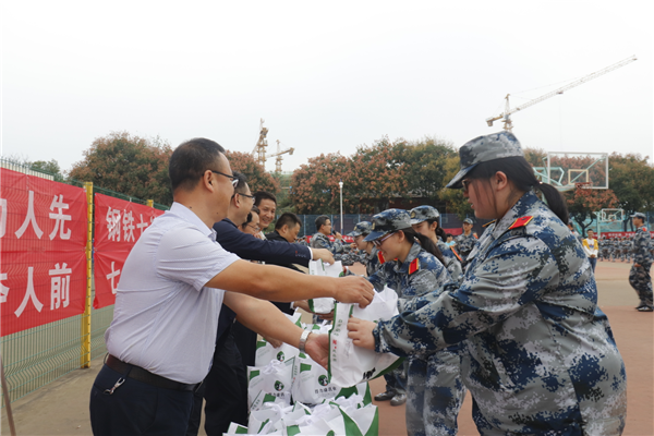 谭红军副总经理介绍了宝鸡得力康乳业有限公司的发展历程,他讲到:得力康乳业公司拥有一流的生产线,给大家发放的产品采用的也是最先进的包装。通过发放酸奶礼包,一是慰问连日来辛苦训练的教官和新生,鼓舞士气;二是让新同学更早的了解畜牧行业;三是希望同学们给公司产品提出宝贵意见,希望全体同学将来勤奋学习,为畜牧业发展贡献智慧和力量。