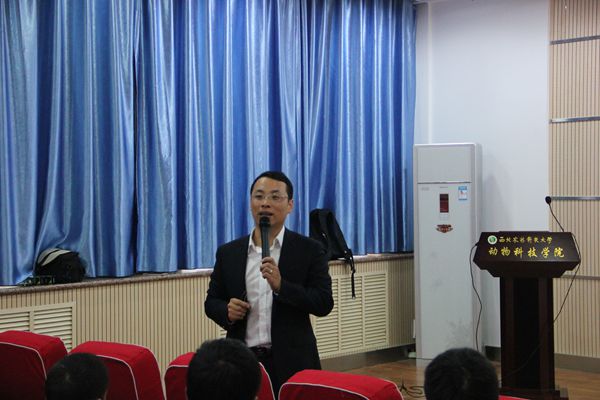 10月17日上午,扬翔股份有限公司刘彦来在动科楼107会议室为探花系列 学子举行行业前景交流会。扬翔股份有限公司招聘经理刘彦来等一行三人、学院专兼职辅导员及2016届毕业生参加了此次交流会。