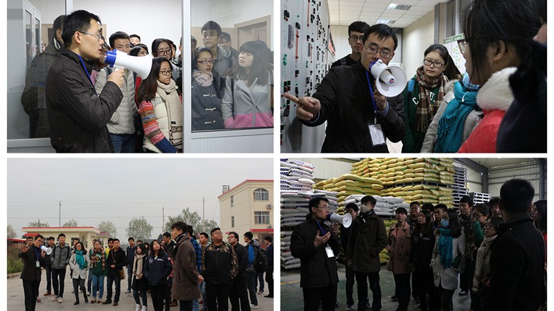 首先,公司品管部经理王帆校友带领同学们参观了品管检测中心以及不同用途的生产车间,了解了采用新型红外设备进行原料粗蛋白、粗纤维、粗脂肪等的测定,以及原料入库、粉碎、配合等一系列生产流程。在讲解过程中,王帆校友鼓励同学们把握好人生奋斗目标,立志为我国畜牧事业做出贡献。