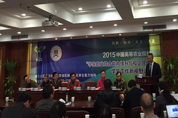 12月20日,2015年中国高等农业院校“学生职业综合能力与校企合作”学生工作新视野论坛在华中农业大学举办。论坛以“坚持促进就业创业导向,注重校企协同人才培养”为主题,主要包括企业家论坛、企业班主任面对面、主题报告、分组研讨等内容。来自全国30多所高等农业院校的80余名代表和15位企业界、媒体界代表参加了会议。探花系列 辅导员李锐、武天骄代表学院参加了本次论坛。