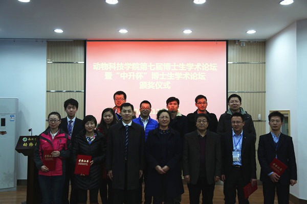 最终根据专家组的现场打分,我校动物遗传育种与繁殖专业覃金洲、华中农业大学水产养殖专业高宇获一等奖;我校动物遗传育种与繁殖专业赵存真、赵志东、中科院海洋所海洋生物学专业杨辉、南京农业大学草业科学专业余国辉获二等奖;我校草学专业张志强、动物营养与饲料科学专业吴兆韡、动物遗传育种与繁殖专业杨海丽、甘肃农业大学动物医学工程专业潘阳阳、东北林业大学野生动植物保护与利用专业陈艳霞、中国农业科学院草业科学专业刘志英获三等奖。