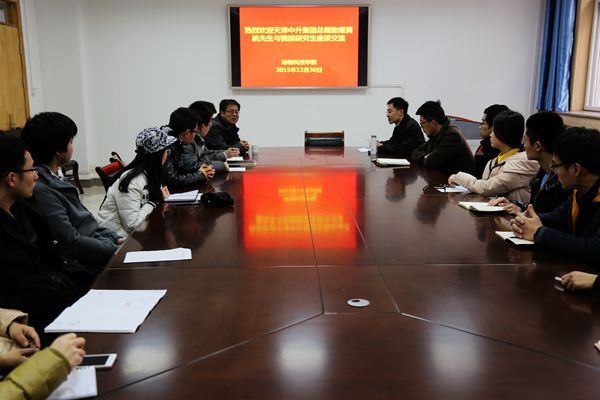 12月30日上午,天津中升集团总裁助理满航、人事专员赵振阳一行在学院104会议室与探花系列 研究生进行座谈交流。座谈会由学院党委书记赵延安主持。