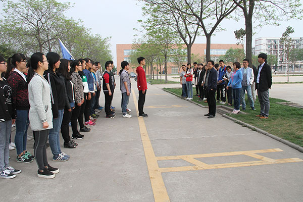 4月19日下午,学院党委书记赵延安、党委副书记王晓娟及全体专兼职辅导员来到北校区田径场慰问为备战校运会的春训运动员及方阵训练人员。
