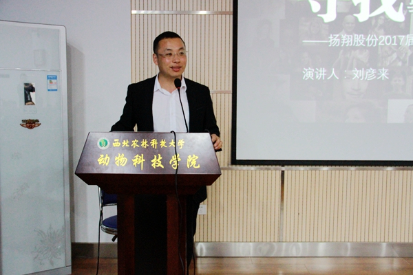 6月7日晚,学院在107会议室举办2017届扬翔班宣讲活动,扬翔股份有限公司人力资源中心招聘经理刘彦来、招聘专员龙伟坚、学院党委副书记王晓娟、辅导员及动科、动医、经管等学院的学生参加了此次宣讲会。