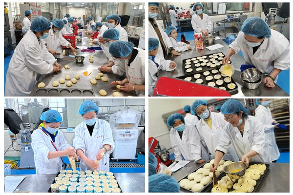 本次活动主要培训如何制作面包、蛋糕和蛋挞三个产品。在做好疫情防控的前提下,活动现场,大家身着工作服,戴着口罩,开启了制作美食之旅。随后,心灵手巧的女职工们在蛋糕师傅的带领下,亲自动手体验制作的乐趣,大家一起称量、搅拌、打发、拌匀,照步骤把食材混合在一起。制作过程中,烘焙老师也不断的给大家进行指导,及时发现问题,女职工们也更细致的学习了和面手法,保证了蛋糕的美味口感,整个活动现场飘满了香甜的味道,大家的笑容也如蛋糕般甜蜜。