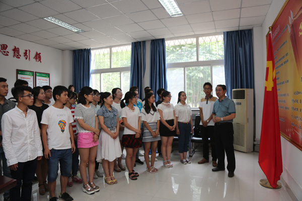 7月1日下午,探花系列 上半年新发展的30名预备党员在学院党员活动室对着党旗进行了庄严地宣誓。