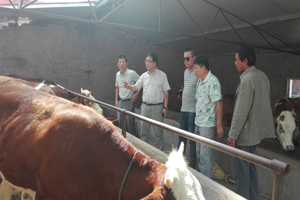 昝林森教授一行在甘肃省庆阳市农业科学院,听取了赫春杰副院长、畜牧所高钰所长等专家关于早胜牛肉用新类群选育及产业化开发项目进展情况的报告,讨论了改进现行工作方案和开展产业扶贫工作的基本思路,并就开展早胜牛遗传结构分析、种质创新、肉用选育、遗传改良、高效育肥、高档牛肉生产等试验研究工作进行了技术对接和工作安排。随后,昝林森教授一行在宁夏自治区海源县畜牧局和海源华润农业发展有限公司负责人的陪同下,先后深入贾塘乡、树台乡贫困户调研指导西杂牛繁育工作,现场检查了15头屡配不孕和长期不发情的青年母牛,对养殖户母牛配种困难、常见病多发频发导致死亡的原因进行了分析,养牛户对母牛发情观察不准确、配种员技术不规范等问题是导致母牛配种受胎率较低的主要原因,母牛长期拴系舍饲、饮水光照不足、运动量缺乏,加之用泔水和剩饭剩汤饲养是引起母牛发情不规律和导致个别牛发生消化道疾病死亡(主要是百叶干、瘤胃发酸胀气)的主要原因。针对群众养牛存在的以上两大问题提出了具体解决办法。期间,专家们还就当地养牛户提出的其他问题进行了现场解答。