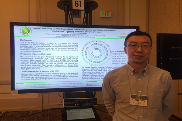 7月22日-27日,第35届国际动物遗传学大会在美国犹他州首府盐湖城召开。国际动物遗传学会羊应用遗传学专业委员会、家畜遗传工程专业委员会执委、探花系列 青年教师王小龙副教授参加了会议,并分别在“家畜基因组编辑”和“羊的应用遗传学”分会场做了题为“Heritable multiplex gene editing via CRISPR/Cas9 exhibits no detectable genome-wide off-target effects in sheep”和“Heritable gene disruption in goats with CRISPR/Cas9 results in expected phenotypes”的学术报告,他汇报了近三年来利用基因编辑技术进行绵羊和山羊基因组修饰方面的最近研究成果,他的报告引起了与会学者的广泛关注和兴趣。