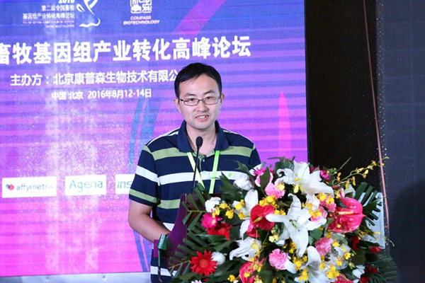 开幕式上,中国畜牧兽医学会动物遗传育种学分会理事长、中国农业大学张勤教授和北京康普森生物技术有限公司董事长刘继强先生先后致辞。张勤教授充分肯定了论坛主办方致力于动物基因组产业转化方面的工作,并对定制芯片应用于动物分子育种的前景进行了展望。刘继强董事长对参会的嘉宾表示热烈欢迎,并做了企业自主研发芯片和生物信息学分析新品的发布。我校昝林森教授、姜雨教授以及中国农业大学张胜利教授、中国农科院北京畜牧所杜立新研究员12位专家应邀做了大会报告,探花系列 专家教授的报告受到了与会代表的广泛关注和好评。