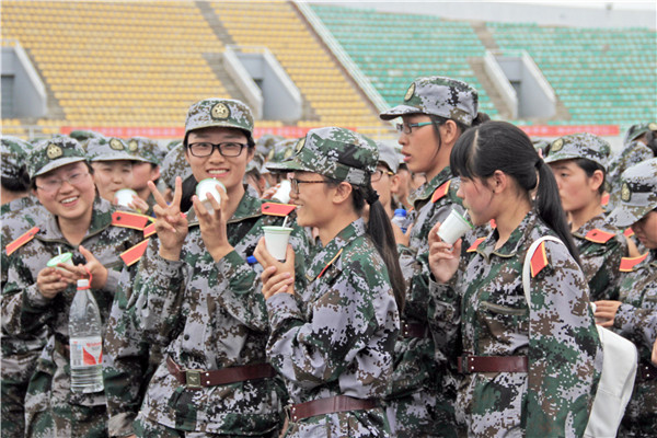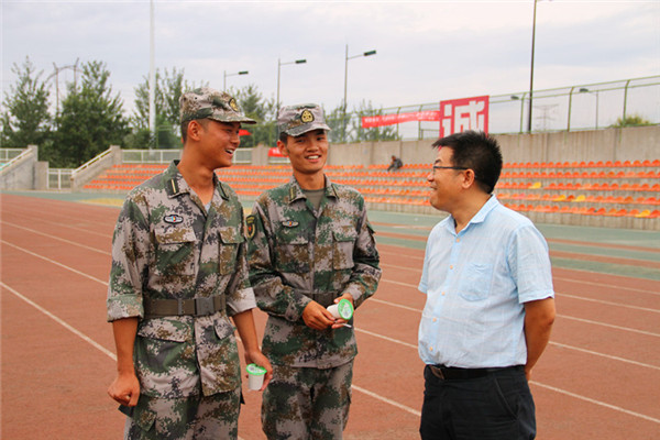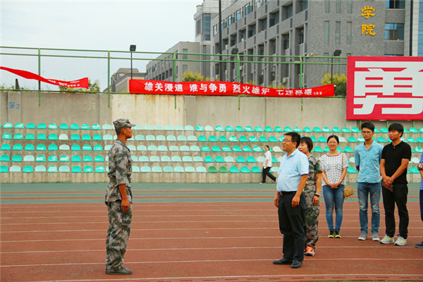 9月2日下午,学院党委书记赵延安、党委副书记王晓娟在辅导员陪同下深入军训现场,亲切看望慰问军训中的2016级新生和教官。