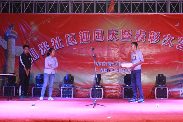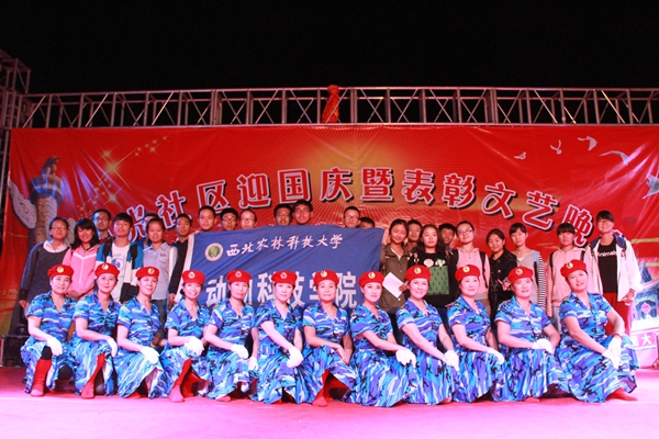 为庆祝祖国67华诞,贯彻落实中共中央关于“两学一做”学习教育要求,号召学生积极培育和践行社会主义核心价值观,鼓励学生走进基层,加深与人民大众的联系,9月28日,动科学院联合李台街道于杨凌会展中心广场举办了迎国庆暨表彰先进文艺晚会,表彰社区及学生先进典型,营造欢乐、祥和、喜庆的节日氛围。