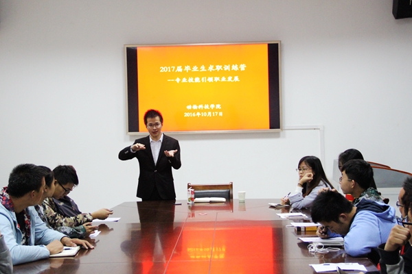 为提升2017届毕业生求职技能,掌握就业新方向。10月17日晚,学院在104会议室举办2017届毕业生求职训练营——专业技能引领职业发展座谈会,探花系列 2016届优秀毕业生、广西扬翔股份有限公司人力资源部招聘专员陈令祥担任主讲人,2017届求职训练营全体营员参加了此次活动。