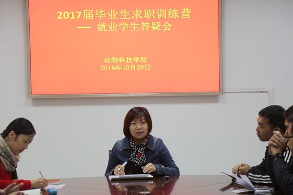 前期,学院领导、辅导员深入学生宿舍,通过与2017届毕业生一对一交流,了解求职学生就业意向和签约情况,46名就业意向学生中,32名学生通过参加近期的各类招聘会已经应聘成功或等待签约,7名学生准备公务员考试,7名学生就业方向还不确定。王晓娟副书记根据前期约谈询问、走访调查结果,详细解答每位学生在求职中遇到的难点与疑问,尤其是针对少数民族、求职意向模糊、公务员考试等学生的个性化化问题进行详细解答。王晓娟副书记结合自己多年的工作经验,强调“我们的专业就是我们的特长”,鼓励同学们从基层做起,掌握技术,积累经验,增强自己的不可替代性;树立正确的职业价值观,在工作地域、岗位类型、薪资待遇、个人发展等方面选择时,结合自身爱好与兴趣,选择与自己价值观念匹配并适合自己的工作岗位。草业131班祁彦文同学表示:目前自己已经拿到多家企业的录用通知,但是仍很难抉择适合自己的岗位,此次答疑会使自己明确了方向,更加坚定农牧行业的基层锻炼,提高自己专业性和不可替代性!