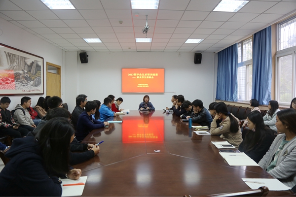 为解答2017届毕业生求职疑问,梳理求职思路,合理选择签约单位。10月28日上午,学院在104会议室举办2017届毕业生求职训练营——就业学生答疑会,学院党委副书记王晓娟、辅导员胡巧娟及2017届求职训练营全体营员参加了答疑会。