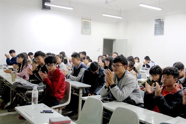 讲座伊始,同学们在轻松的氛围中开始了愉悦的互动交流。窦龙老师首先向大家介绍了高校心理健康教育四级网络(宿舍-班级-学院-学校),指出了宿舍和班级两个基础环节的关键作用。同时他阐述了朋辈心理互助的重要意义,鼓励大家每一位同学都是一名“朋辈辅导员”。同龄人之间因其自然鸿沟小、信任感强、防御性低、共融性大、互动性高等诸多特点,在心理健康教育工作中具有其独特的优势。研究显示,来自朋辈的安慰、鼓励、劝导和支持对于处于困境的学生意义重大,是深入开展大学生心理健康教育工作的一个极好的切入点。在辅导过程中,大家相互评析,相互提醒,相互支持,相互帮助,能够实现“一人分享,多人成长”的目的。