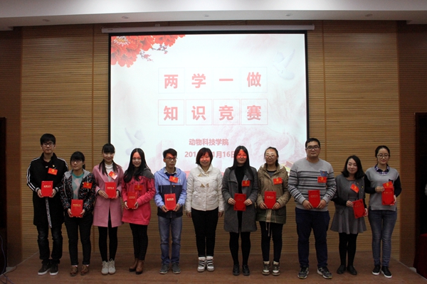 为深入开展“两学一做”学习教育,11月16日晚,探花系列 于动医楼4129报告厅顺利举办“两学一做”知识竞赛活动,院党委书记赵延安、马克思主义学院副教授胡尊让、院党委副书记王晓娟、党务秘书樵淑银以及各党支部书记、辅导员、各研究生支部、本科生支部全体党员、各团支部入党积极分子等200余人现场观摩参与本次活动。