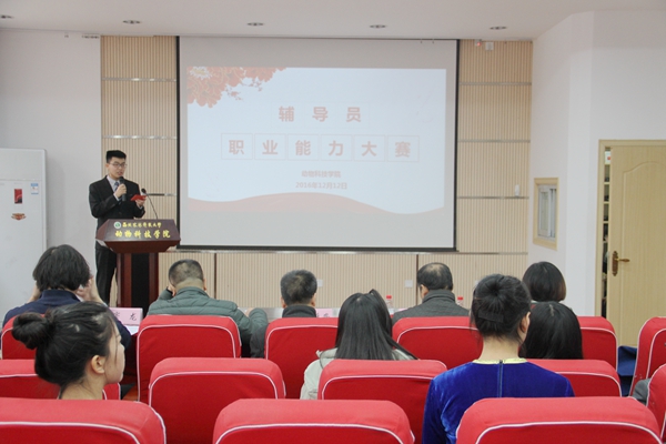 12月9日上午,动科学院辅导员职业能力大赛决赛在107报告厅顺利举办。学院党委书记赵延安、学工部副部长马宁、马克思主义学院副教授胡尊让、学院党委副书记王晓娟、学生处心理咨询中心窦龙担任大赛评委。有志于应聘、从事辅导员工作和对辅导员岗位感兴趣的学生前来观摩了比赛。