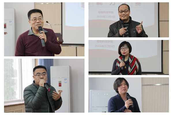 评委们针对辅导员们的表现进行了点评。窦龙老师观赛后,感觉自己经受了一次洗礼,受到很大触动,一定更好地用心用情履行好班主任职责,配合学院做好学生工作。胡尊让副教授对老师们熟悉掌握数百名学生的详细信息深感震撼,他结合参与动科学院学生工作的切实感受,夸赞了动科学院良好的育人氛围以及辅导员老师们的敬业精神和工作能力。