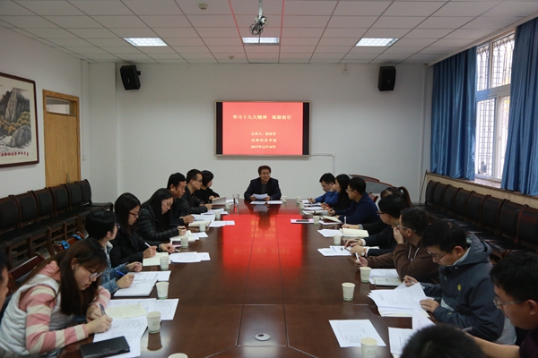 赵延安书记强调:各党支部书记要深刻领悟十九大精神内涵,充分发挥“主心骨”、“领头雁”作用,牢固树立“四个意识”,用习近平新时代中国特色社会主义思想武装自己,在实际工作中懂规矩、守纪律、明底线、知敬知畏,带头发挥先锋模范作用,带领支部成员切实把十九大精神学习好、领会好、贯彻好,在全院迅速掀起学习十九大精神的热潮。同时,要切实把思想和行动统一到党的十九大精神上来,把雷厉风行和久久为功有机结合起来,以钉钉子精神做实做细做好各项工作,为学院学科建设和人才培养贡献自己的智慧和方案。