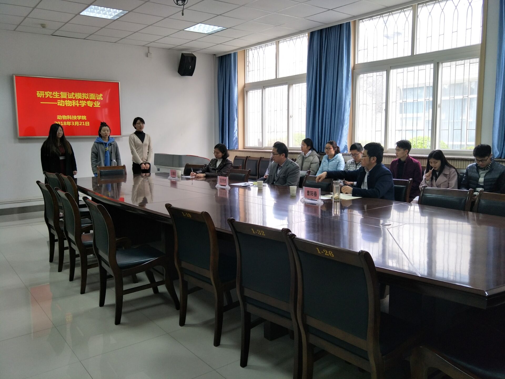 为使考研学子更快速、真实、直接、全面地了解考研复试面试程序,掌握面试技巧,提升复试信心,学院于3月21日成功举办2018年考研同学模拟面试。本次模拟面试分别邀请到来自动科、草业、水产专业7位专家教授担任评委,共计60余名同学参加。