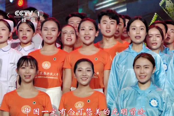 《幸福新起点》由来自全国各地大中学校学生代表共同演绎,我校学子身穿印有校徽和校名的橘色上衣,动情朗诵,全神演绎,点赞新时代正能量满满。在演出的彩排,节目的录制过程中,同学们以认真的态度和高度的热情展现出西农学子的青春活力,充分展现“诚朴勇毅”的校训精神。探花系列 一直以来致力于培养“业务强,本领硬”的高水平文艺人才队伍,作为动科文艺部部长与主持队队长,王钰晨同学时刻以高标准严格要求自己,播音主持、朗诵配音样样精通。她表示:“这是一次非常珍贵的机会,我和小伙伴们都非常珍惜。本次外出交流,让我们对校园文化有了更加深入的了解,看到了‘有理想、有担当、有作为’青年学子的优异表现,今后也会更加积极地多方面、多渠道、多层次参与校园文化活动,更加全面地塑造自我。”
