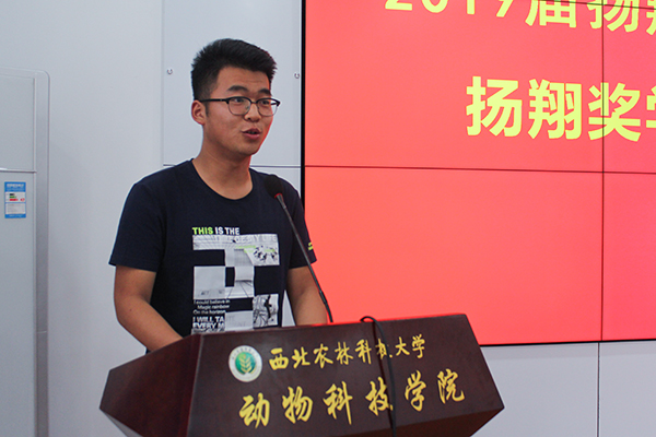 刘彦来经理对获得“扬翔奖学金”的同学和新一届“扬翔班”学员表示祝贺,对学校和学院的大力支持和同学们的信任表示感谢。同时,刘彦来经理希望“扬翔”班的成员能够不忘初心,坚守畜牧业,也希望更多的同学能够加入“扬翔”,拥有阅历更加丰富的人生。