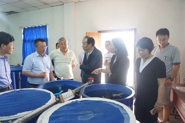 周长奎一行先后考察了试验站的设施设备以及正在开展的苗种繁育、生态养殖模式构建及饲料开发等试验示范工作,听取了试验站首席专家吉红教授就试验站功能定位及建站目标、六大主推技术、通过打造平台促进安康渔业产业发展、开展科技扶贫工作等方面的汇报,着重了解了国家级“鱼跃汉水星创天地”的建设与运营状况,并和正在站工作的陕西省科技特派员水产养殖产业服务团的成员亲切交谈,询问服务团对接深度贫困县区、开展技术服务的情况。