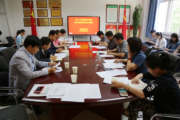 5月22日下午,学院在党员活动室召开本学期第三次党支部书记工作例会,学院党委书记赵延安、各党支部书记参加了此次会议,会议由党委副书记王晓娟主持。