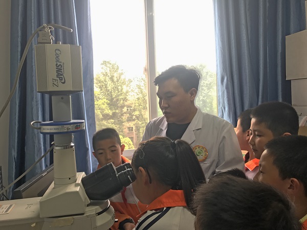 在生殖生物学与细胞工程研究团队实验室中,博士研究生张鹏飞、李学亮,硕士研究生李荣楠、曾耀、杨晨浩,分别向同学们介绍了精密仪器设备的名称及用途,并向学生们演示了各类显微镜的基本使用方法。当学生们看到转基因小鼠在紫外线的照射下会发出绿色荧光时,好奇心被瞬间激发,争先恐后地问着问题。博士研究生张鹏飞、李学亮,以最简单易懂的方式,为同学们解答心中的各种疑惑。探花系列 硕士研究生叶翔杨为中小学生带来秦岭野生鸟类鉴赏的讲解,结合鸟类摄影作品向大家介绍其生活习性及分布区域等知识。
