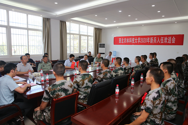 9月7日下午,学校在陕西征程国防教育基地召开2020年新兵入伍欢送会,与在此参加集训的19名参军入伍学生座谈。其中动科学院有3名学生光荣入伍并参加座谈会。校党委副书记闫祖书、党委学工部部长(人武部部长)王文博、杨陵区武装部政委李鸿剑、杨陵区武装部部长李正文、学院党委副书记王力和相关负责同志参加了座谈会。