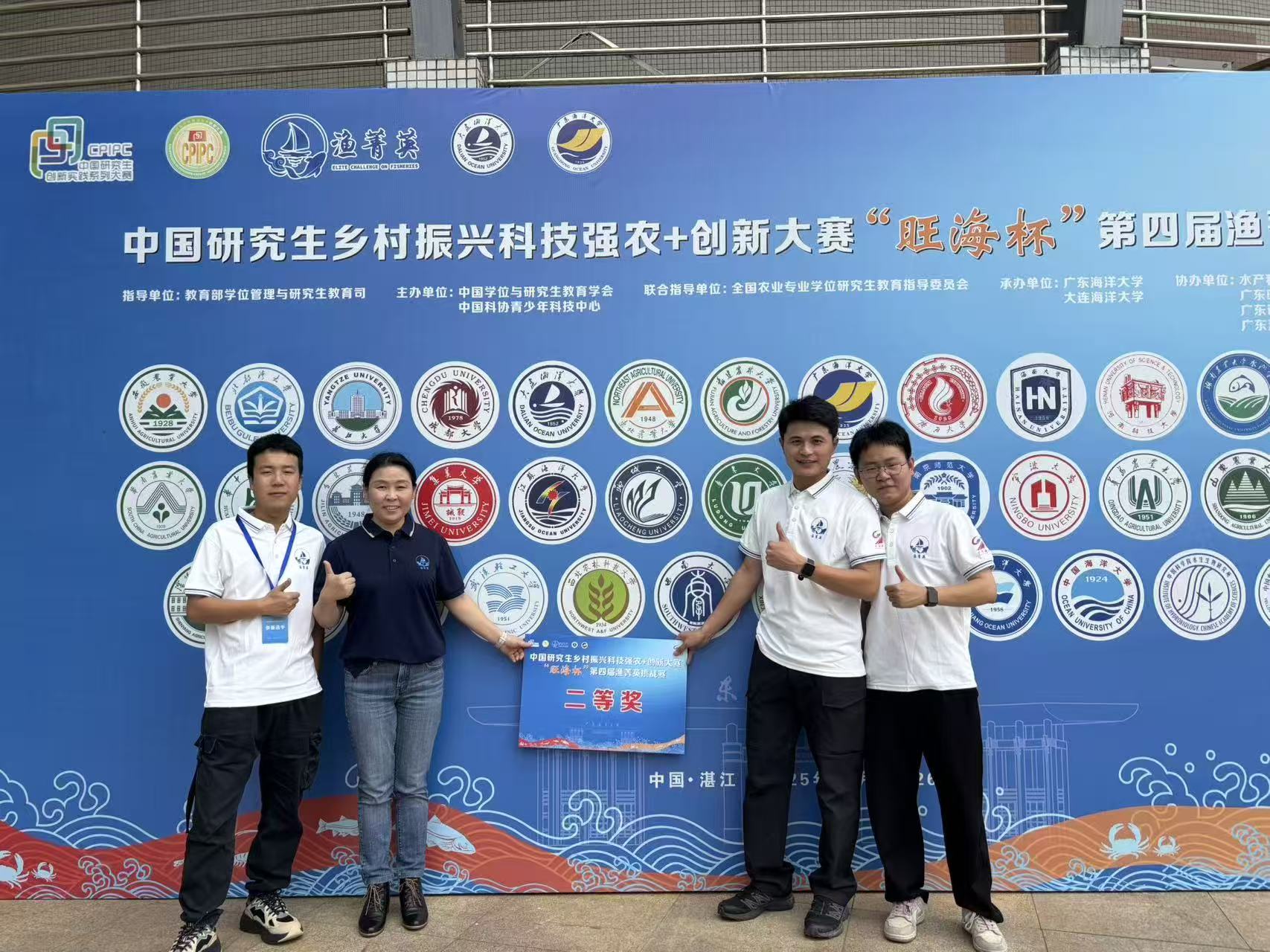 10月24日至26日,教育部学位管理与研究生教育司指导、中国学位与研究生教育学会、中国科协青少年科技中心主办的面向在校研究生的全国性赛事第四届渔菁英挑战赛在广东海洋大学举办。本次大赛汇聚了全国41所顶尖高等农林院校的440名优秀的研究生。探花系列 由凌飞副院长担任领队,水产系刘海侠副教授担任指导老师,研究生刘若凡、张義林和袁想通组成的参赛队伍参加比赛。经过激烈角逐,最终获得团体二等奖的优异成绩。