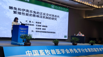 杨孟哲作《獭兔和伊高乐兔的正反交对其后代繁殖性能的影响及机制的研究》报告