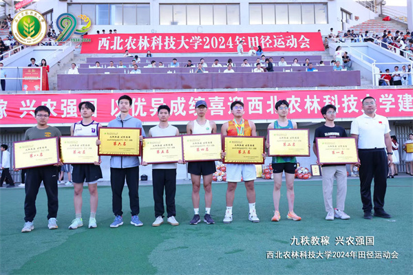 荣获学生男子团体总分第七名(图左二为学生会体育部负责人张闻轩同学代表学院领奖)