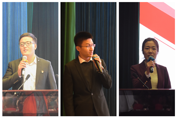 复旦大学辅导员曲正祥,现挂职于云南省大理州永平县博南镇,担任党委副书记、驻村第一书记和扶贫工作队队长,他全面介绍了当前脱贫攻坚的总体情况和个人在博南镇开展的工作,一组组数据、一张张图片无不体现着党中央的决心和西农人在脱贫攻坚中贡献的力量;选调生李强,现为陕西省人民政府办公厅综合一处干部,分享了他在省政府工作的心得和体会,讲解了作为一名公务员应该如何“办文、办事、办会”,以实例介绍了如何增加知识储备和锻炼写作能力;选调生武天骄,现为共青团武功县委书记,以“坚守初心,让青春绽放在基层”为主题,详细介绍了选调生的工作内涵以及驻村开展工作的情况,用亲身经历向学弟学妹讲述着西农青年的使命与担当。