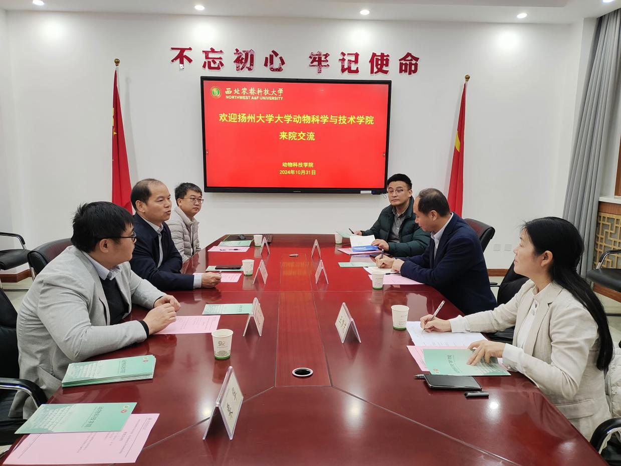 10月31日上午,扬州大学动物科学与技术学院党委副书记高红明、副院长王梦芝、动科专业负责人陈志一行3人来院调研。学院党委书记曹军会、智牧系主任王洪宝参加会议,会议由副院长凌飞主持。