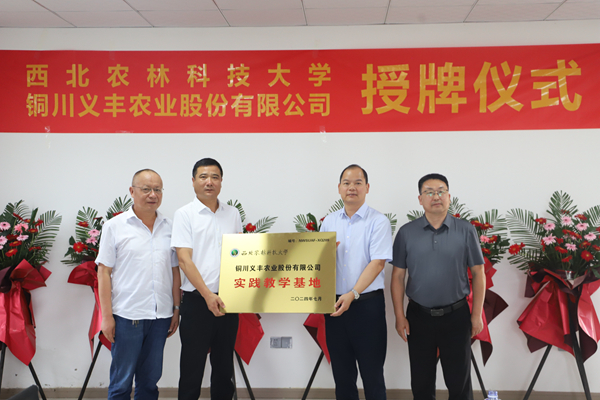 7月29日,学院党委书记曹军会带队赴铜川义丰农业股份有限公司洽谈校企合作并授牌。教务处副处长潘瑞、孙世铎教授、于太永教授参加调研。
