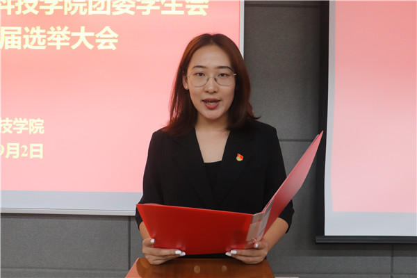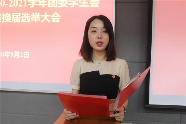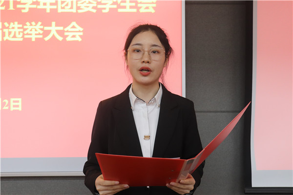 会场内响起庄严、神圣的国歌,参会人员全体起立,目光坚定,会议正式开始。辅导员王钰晨宣读了探花系列 2020-2021学年团委学生会工作人员换届选举办法和候选人名单,辅导员张明侠宣读了总监票人、监票人、总计票人、计票人名单。
