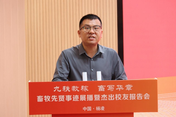 动科学院奶山羊团队安小鹏研究员、牛团队博士生郭俊涛代表师生发言,表示要将不忘科学研究初心,牢记奉献社会使命,传承“西农精神”,努力擎起大旗,以优异成绩告慰先贤,为畜牧业高质量发展贡献力量。