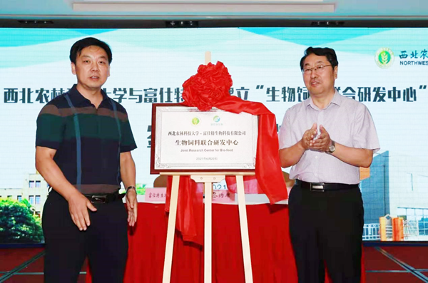 姚军虎教授与富仕特集团执行董事席联敏为“生物饲料联合研发中心”揭牌