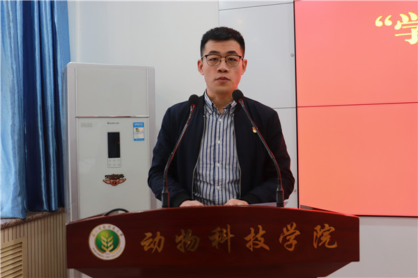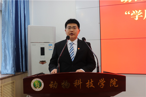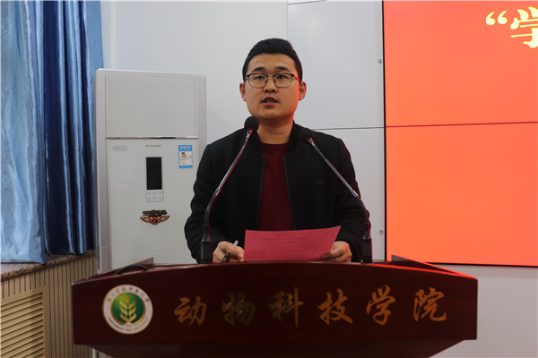 最后,党委副书记王力指出近年来,动科学院也在积极探索构建学风建设长效机制,不断提升人才培养质量,取得了显著成效。通过几年的探索,初步形成了“乐学-动力”、“勤学-引领”、“导学-共进”、“辅学-帮推”、“善学-创新”、“视学-养成”六方面的学风建设长效机制。为进一步推进学院学风建设他表示:一是要提高思想认识,狠抓学风建设,学习是学生的第一要务,大学是学生人生成长的重要环节。全体学生干部、班级学生干部带头抓学风。二是要创新方式方法,提升学风建设。通过开展系列富有成效的学习活动,树立一批学习标兵和典型,发挥示范引领作用。三是要发挥团学组织的作用,助力学风建设。全体学生要自觉成为学风建设的践行者、带头者,认真上课,按时上下课不迟到,不旷课,努力成为文明教室,文明宿舍,文明校园建设的主力军,把干部本色露出来,把干部的形象树起来,持续带头推动学院学风建设再上新台阶。最后王书记向参会全体学生提出倡议:“同学们,奋斗是青春最亮丽的本色,奋斗的青春最美丽,让我们大家携起手来努力奋斗在学风建设中去实践自己的奋斗青春!”