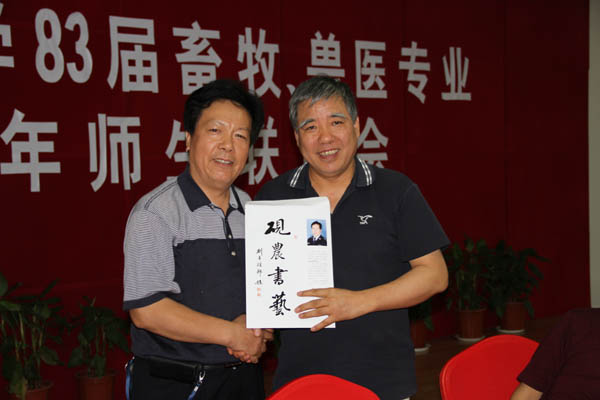 动科学院党委书记闫祖书、动医学院党委书记赵献军对畜牧、兽医专业83届校友返校聚会表示热烈的欢迎,并分别从师资队伍、人才培养、科学研究等方面介绍了两个学院的基本情况。希望校友们通过各种途径,加强与学校的沟通和联系,关心和支持畜牧、兽医学科的建设和发展。
